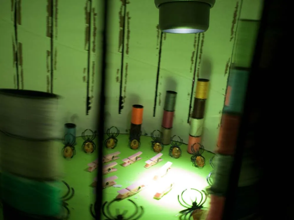 An outlier of the amusement park ecosystem, dark rides rely on their ability to swallow subjects in an overwhelming lack of light. In doing so, an apparatus is constructed which can precisely manipulate the senses of which humans are most dependent: inch-wide corridors transform into caverns, projections on plaster manifest as phantasmagoria, and dollar store paraphernalia resurrects itself in discordant animation. As the drones of invisible machinery resonate on tile-laden flooring, a self-guided journey embarks behind makeshift walls and car wash curtains.